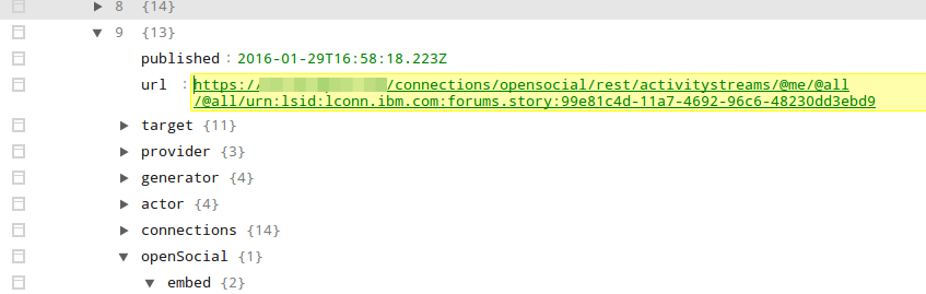 The JSON gets loaded by the URL https://[FQDN]/connections/opensocial/rest/activitystreams/@me/@all/@all .