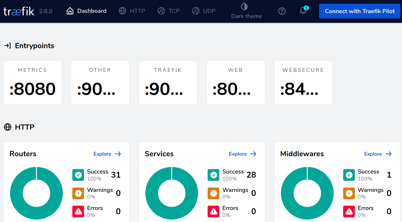 As soon as I would try to install CP7 into another namespace, this controller would request the same port number or refuse to install at all (I did not try it). I decided to replace this with a traefik ingress controller. At the moment I use version 2.6 with it’s nice dashboard.