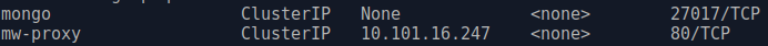 After that I switch the mw-proxy service from NodePort to ClusterIP.