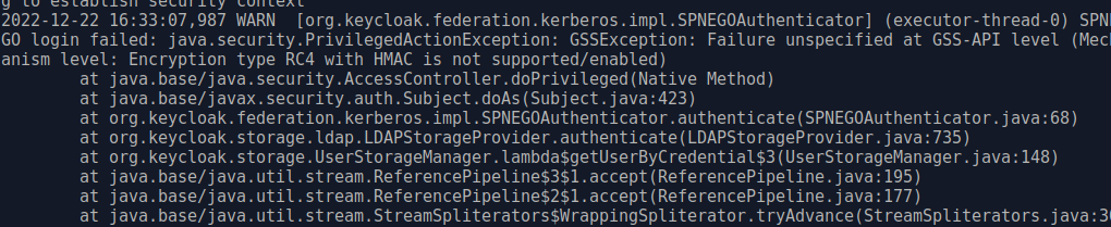 java.security.PrivilegedActionException: GSSException: Failure unspecified at GSS-API level (Mechanism level: Encryption type RC4 with HMAC is not supported/enabled